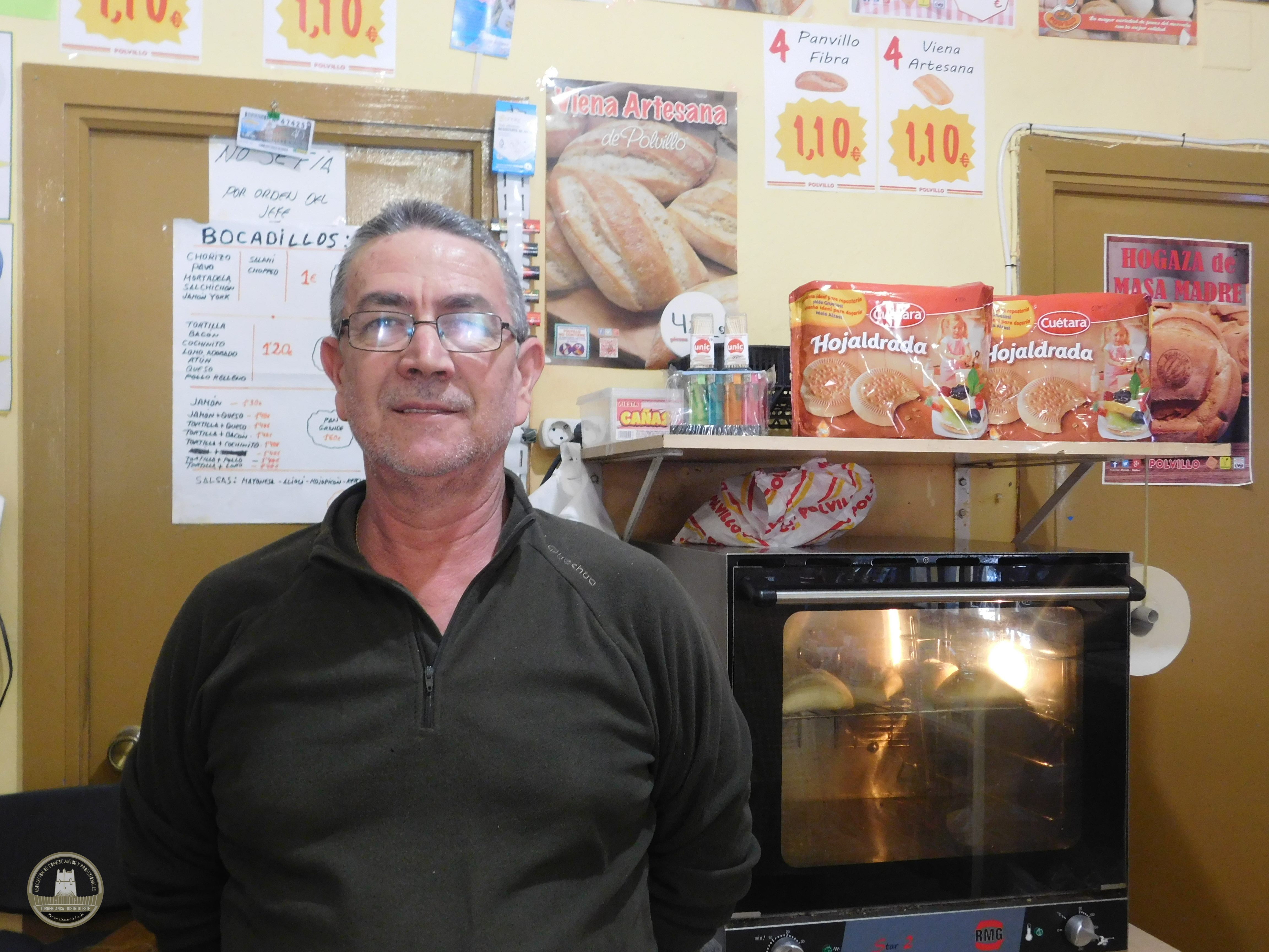 Panadería Polvillo Juan es un comercio regentado por Juan Vega, vecino del barrio de Torreblanca de toda la vida que hace 5 años buscó horizontes nuevos en el terreno profesional y se convirtió en dueño de esta panadería y tienda de desavíos.